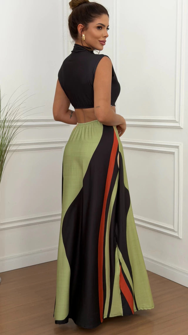 Vestido Largo Elegante Estampado con Hebilla